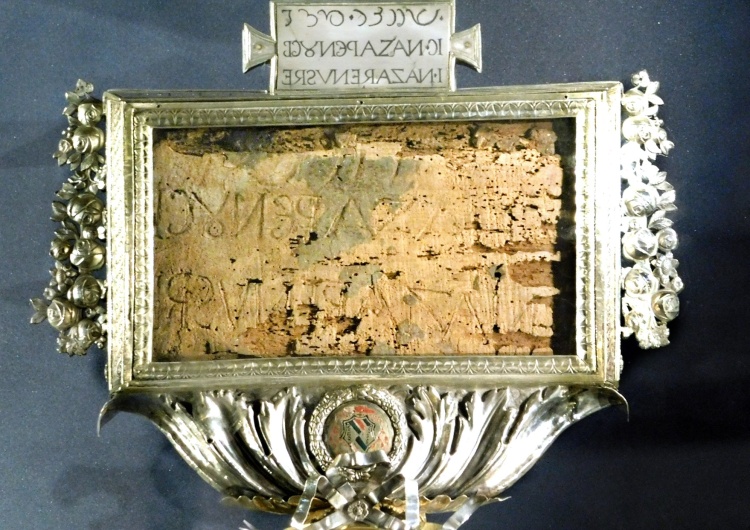 Kaplica, w której aktualnie znajdują się bezcenne przedmioty, powstała podczas Roku Świętego 1925 w starożytnej zakrystii kościoła i została zmodyfikowana już w naszych czasach, w latach od 2003 do 2005 r. Wszystko czyniono tak, aby ułatwić nie tylko dojście do relikwii licznym wiernym, ale sprawić, aby odbyli oni swego rodzaju pielgrzymkę na Kalwarię. Idziemy zatem najpierw schodami w dużym pomieszczeniu, w którym umieszczono stacje Drogi Krzyżowej, wzbogacone o cytaty z Nowego Testamentu oraz z Liturgii Wielkiego Piątku. Dopiero później dostrzegamy szafę, w której za szkłem, umieszczono sześć pamiątek szczególnego wydarzenia, jakie miało miejsce na Kalwarii dwa tysiące lat temu. Mamy zatem, obok relikwii samego krzyża, relikwie gwoździa, dwa ciernie, tabliczkę z napisem „winy” Jezusa sporządzoną na polecenie Piłata i inne fragmenty.