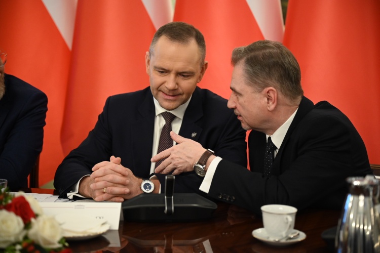 • Rozmowy toczyły się szczególnie wokół umowy programowej podpisanej pomiędzy kandydatem na prezydenta Karolem Nawrockim a Komisją Krajową NSZZ "Solidarność" w lutym ubiegłego roku.