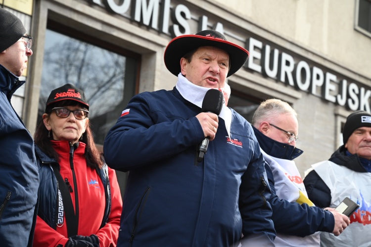 Kazimierz Kimso, przewodniczący ZR Dolny Śląsk NSZZ "S" mówił o konieczności sprzeciwu wobec – jak to określił – narzucanej polityki.
