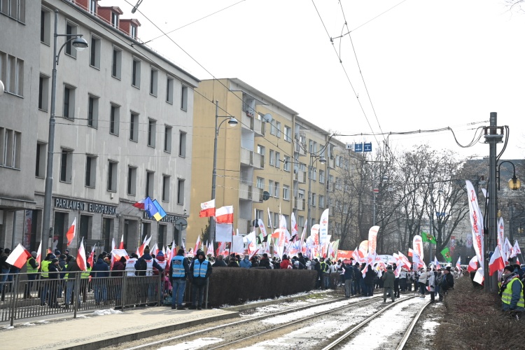 "Nadszedł czas walki". Solidarność protestowała we Wrocławiu przeciwko Zielonemu Ładowi, ETS i umowie z Mercosur