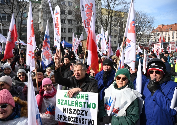 Przedstawiciele Solidarności protestowali dziś we Wrocławiu przeciwko Zielonemu Ładowi, systemowi ETS i umowie z Mercosur. Przedstawiciele dolnośląskiej, ale również m.in. podbeskidzkiej, zielonogórskiej, jeleniogórskiej Solidarności oraz Regionu Zagłębie Miedziowe NSZZ "S" podkreślali, że nie godzą się na odgórnie narzucaną politykę klimatyczną.